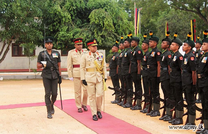 வருகை தநத தளபதியை பிரிகேட் தளபதிகள் மற்றும் பணிநிலை அதிகாரிகள் வரவேற்றனர். அதன்பிறகு, 6 வது இலங்கை சிங்க படையணி படையினரால் அவருக்கு பாதுகாவலர் அறிக்கையிடல் மரியாதை மற்றும் அணிவகுப்பு மரியாதை வழங்கப்பட்டது.