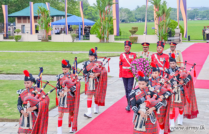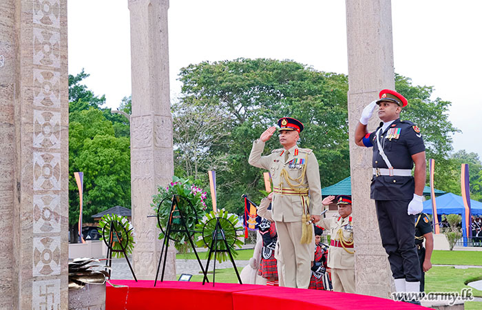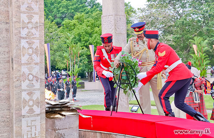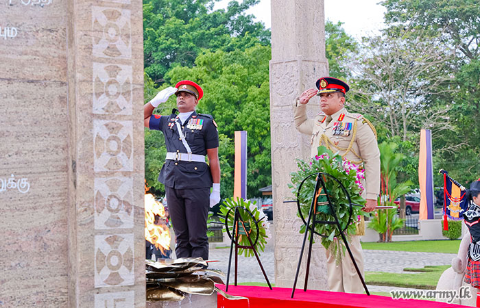அன்றைய பிரதம அதிதி, பல சிரேஷ்ட இராணுவ அதிகாரிகளுடன் இணைந்து, போர்வீரர்களின் நினைவுத் தூபிக்குச் சென்று தேசத்திற்காக உயிர்நீத்த போர் வீரர்களின் நினைவு தூபிக்கு மலர் வளையம் வைத்து வணக்கம் செலுத்தினர்.