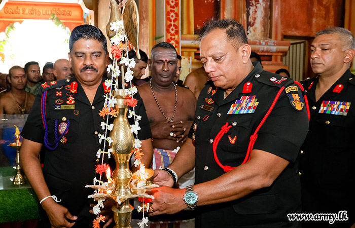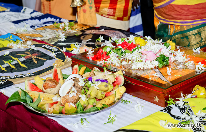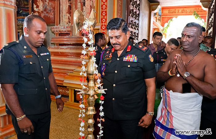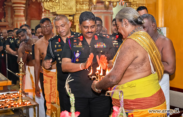 ஆலய மணிகள் ஒலிக்கத் தொடங்கியதும் தளபதி இராணுவக் கொடியை ஆலய பிரதம குருக்களிடம் ஆசீர்வாதத்திற்காக கையளித்தார். அதனைத் தொடர்ந்து, ஆலய பிரதம சிவாச்சாரியார் சிவஸ்ரீ சர்வேஸ்வர குருக்கள் தலைமையில் பூஜை நடைபெற்றது.