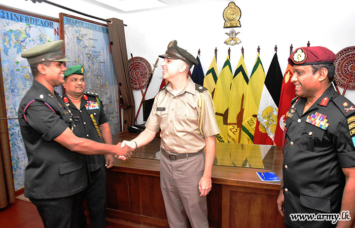 இலங்கை அமெரிக்க தூதரகத்தின் பாதுகாப்பு ஆலோசகர் லெப்டினன் கேணல் மேத்யூ ஹவுஸ் அவர்கள் 2025 ஜூலை 26 அன்று 22 காலாட் படைப்பிரிவின் தளபதி மேஜர் ஜெனரல் எச்.டி.எல்.எஸ். பெரேரா ஆர்டபிள்யூபீ ஆர்எஸ்பீ என்டிசீ அவர்களை 22 வது காலாட் படைப்பிரிவில் சந்தித்தார்.