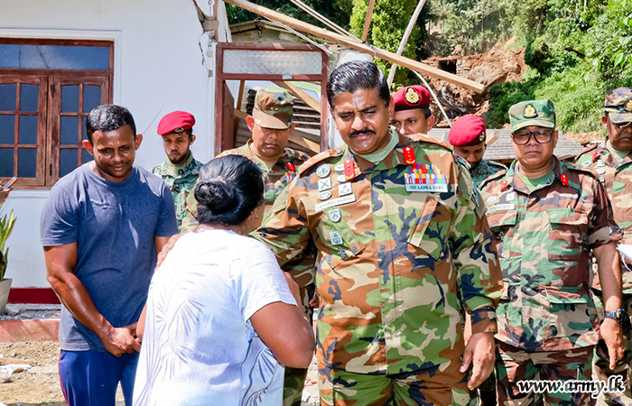 இராணுவத் தளபதி 11 வது காலாட் படைப்பிரிவிற்கு பொறுப்பான பிரதேசத்திற்கு விஜயம் மேற்கொண்டு, நடைபெற்று வரும் அனர்த்த நிவாரண நடவடிக்கைகளின் முன்னேற்றத்தை ஆய்வு செய்தார்.