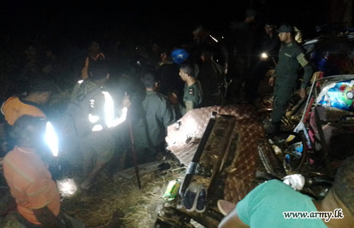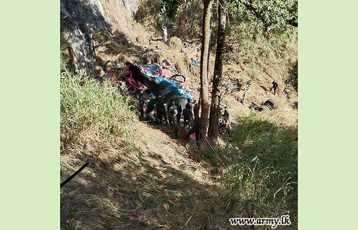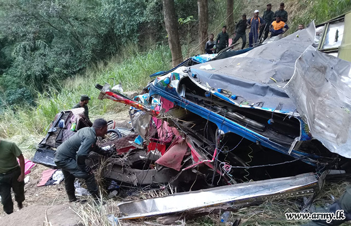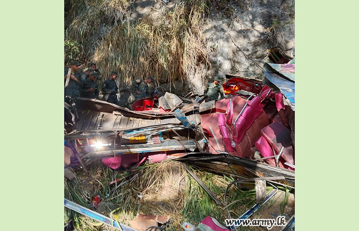 நேற்று இரவு தொடங்கிய மீட்பு பணியில் விஜயபாகு காலாட் படையணி, கெமுனு ஹேவா படையணி மற்றும் கொமாண்டோ படையணிகளைச் சேர்ந்த கிட்டத்தட்ட 200 இராணுவ வீரர்கள் பங்கேற்றனர். பேருந்து பல நூறு மீட்டர் பள்ளத்தில் நின்றதால், பாதிக்கப்பட்டவர்களை வெளியேற்றுவது மிகவும் கடினமாக இருந்தது.
