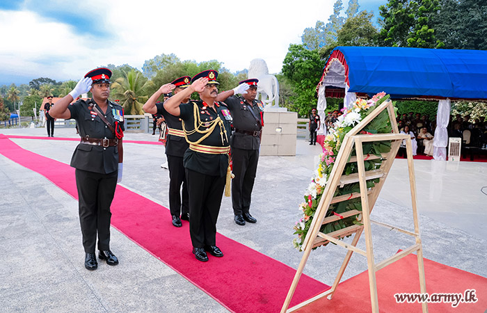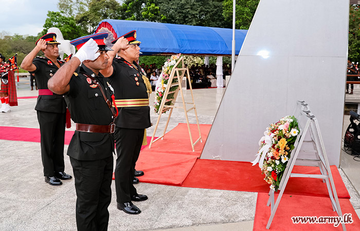 இராணுவத் தளபதி, சிரேஷ்ட அதிகாரிகள், முன்னாள் இராணுவத் தளபதிகள், ஓய்வுபெற்ற சிரேஷ்ட அதிகாரிகள், சிரேஷ்ட அதிகாரிகள், அதிகாரிகள் மற்றும் வீரமரணம் அடைந்த போர் வீரர்களின் குடும்ப உறுப்பினர்கள் படையணி தலைமையக போர் வீரர்களின் நினைவு தூபியில் போரின் நீடித்த தியாகம், வீரம் மற்றும் வீரச்சரித்திரம் எழுதியவர்களை கௌரவிக்குமுகமாக மலர் வளையம் வைத்து அஞ்சலி செலுத்தினர்.