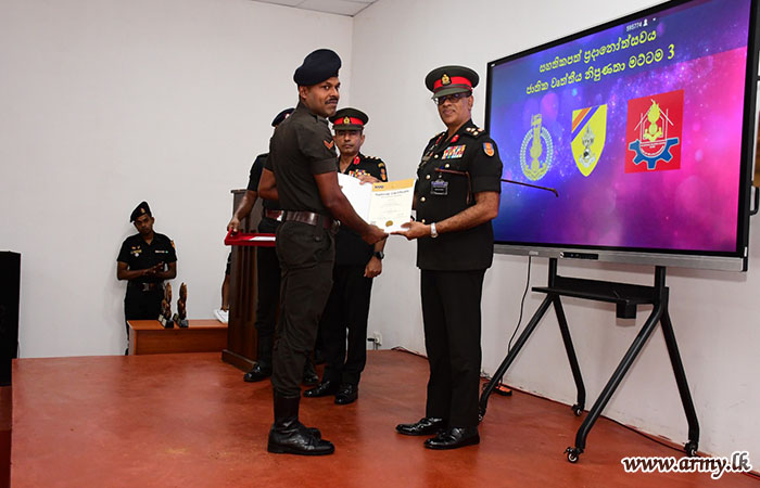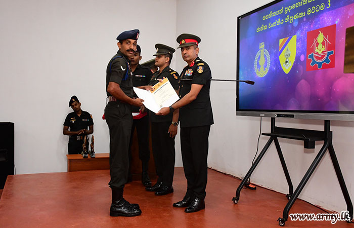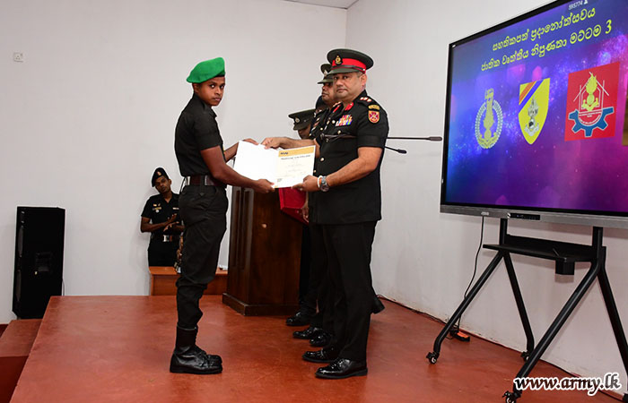 பல்வேறு படையணிகளை பிரதிநிதித்துவப்படுத்தும் மொத்தம் 83 சிப்பாய்கள் தங்கள் தொழிற் சாதனைகளை அங்கீகரிக்கும் விதமாக தொழிற் தகைமை சான்றிதழ்களைப் பெற்றனர்.