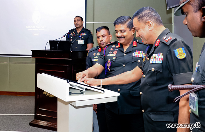 இராணுவத் தளபதி லெப்டினன் ஜெனரல் லசந்த ரொட்ரிகோ ஆர்எஸ்பீ சீடீஎப்-என்டியூ பீஎஸ்சீ ஐஜீ அவர்கள் இந்த நிகழ்வில் பிரதம விருந்தினராகக் கலந்து கொண்டார். இலங்கை இராணுவத்தின் அனைத்து உறுப்பினர்களுக்கும் நடத்தை விதிகள் ஒரு அடித்தள வழிகாட்டியாக செயல்படுகின்றன என்பதை வலியுறுத்தி, திட்டத்தின் நோக்கம் மற்றும் முக்கியத்துவத்தை கோடிட்டுக் காட்டும் நிகழ்வுடன் நிகழ்ச்சி ஆரம்பமாகியது. மின்னணு வடிவம் நிகழ்நிலை தளங்கள் மூலம் பங்கேற்கும் பணியாளர்கள் உட்பட நிறுவனத்தில் பரந்த அணுகல் மற்றும் பயனுள்ள பரவலை உறுதி செய்கிறது.