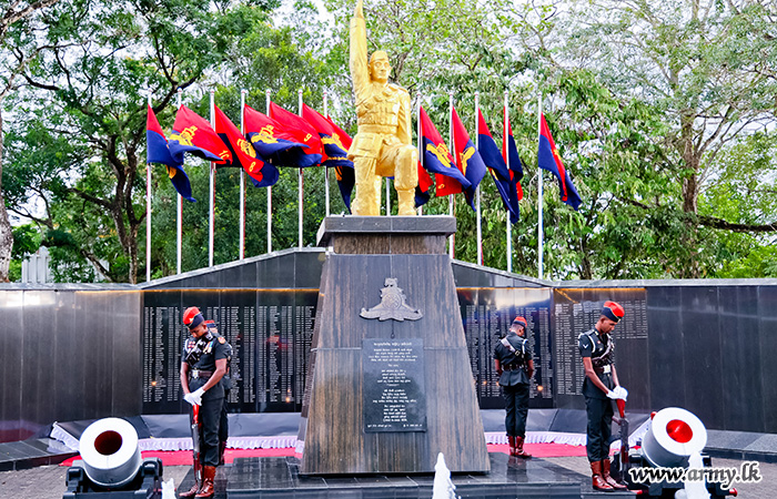 இராணுவத் தளபதி, பீரங்கிப் படையணியின் படைத் தளபதி,சிரேஷ்ட அதிகாரிகள், அதிகாரிகள், சிப்பாய்கள் மற்றும் வீரமரணம் அடைந்த போர் வீரர்களின் குடும்ப உறுப்பினர்களுடன் இணைந்து, நினைவு தூபியில் மலர் வைத்து வீரமரணம் அடைந்த போர் வீரர்களுக்கு அஞ்சலி செலுத்தினர். நிகழ்வின் நிறைவாக 'லாஸ்ட் போஸ்ட்' வாசிக்கப்பட்டது.