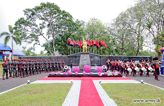இராணுவ சம்பிரதயத்திற்கிணங்க, வருகை தந்த இராணுவத் தளபதிக்கு அணிவகுப்பு மரியாதை வழங்கப்பட்டதை தொடர்ந்து, தேசிய கீதம், இராணுவப் பாடல் மற்றும் படையணியின் பாடலுடன் நிகழ்வு ஆரம்பமாகியது. வீரமரணம் அடைந்த போர் வீரர்களின் நினைவாக பல மத அனுஷ்டனங்கள் நடைபெற்றதை தொடர்ந்து, அஞ்சலி செலுத்தப்பட்டது. மேலும் போர் வீரர்களின் உன்னத தியாகத்தை கௌரவிக்கும் வகையில், கூடியிருந்த அனைவரும் இரண்டு நிமிடங்கள் மௌன அஞ்சலி செலுத்தினர்.
