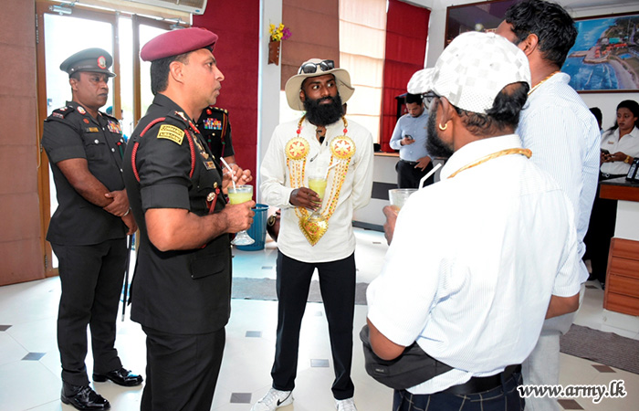 யாழ்.பாதுகாப்புப் படைத் தலைமையக தளபதி மேஜர் ஜெனரல் கே.ஏ.என். ரசிக்க குமார என்டிசீ பீஎஸ்சீ அவர்களின் மேற்பார்வையின் கீழ், காங்கேசன்துறை தல்செவன இராணுவ விடுதியில் திரு. இனோஷன் சுரன் அவர்களை 51 வது காலாட் படைப்பிரிவின் தளபதி மேஜர் ஜெனரல் எம். ரிஸ்வி ராசிக் ஆர்எஸ்பீ என்டியூ அவர்கள் அன்புடன் வரவேற்றார். 51 வது காலாட் படைப்பிரிவின் படையினர் அவரது விதிவிலக்கான அர்ப்பணிப்பு, சகிப்புத்தன்மை மற்றும் தேசபக்தி உணர்வை கௌரவிக்கும் வகையில் சிறப்பு வரவேற்பு நிகழ்ச்சியை ஏற்பாடு செய்திருந்தனர்.