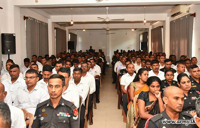 இராணுவ நலன்புரி நிதி பணிப்பகத்தின் பணிப்பாளர் கேணல் கே.ஏ.டி.சி.ஜே. கொடித்துவக்கு அவர்கள் பங்கேற்பாளர்களுக்கு உரையாற்றி, நிதியின் பரப்பு மற்றும் நோக்கத்தை விளக்கினார். மேலும், இராணுவத்தினரின் வாழ்க்கைத் தரத்தையும் நிதி பாதுகாப்பையும் மேம்படுத்துவதில் இந்நிதியின் முக்கிய பங்கு குறித்து விரிவாக எடுத்துரைத்தார். அத்துடன், விண்ணப்பங்களைச் சமர்ப்பிக்கும் முறையான செயல்முறைகளை விளக்கி, விரைவான செயலாக்கத்தை உறுதி செய்ய ஆவணங்களில் துல்லியமும் முழுமையும் அவசியம் என்பதை வலியுறுத்தினார்.