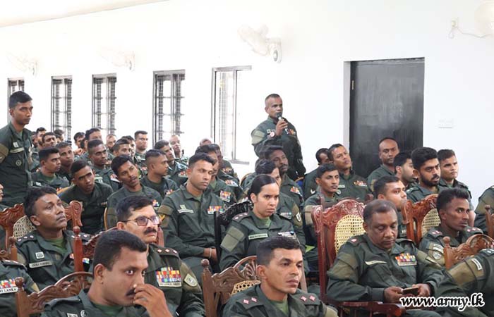 இராணுவ நலன்புரி நிதிய பணிப்பகத்தின் பணிப்பாளர் பிரிகேடியர் டி.ஜீ.என்.டி. சில்வா அவர்கள், இராணுவ வீரர்களின் நலன் மற்றும் நிதிப் பாதுகாப்பை உறுதிப்படுத்துவதில் நிதியத்தின் பங்கை விளக்கி, அதன் நன்மைகள், நடைமுறைகள் மற்றும் சரியான ஆவணங்களின் முக்கியத்துவத்தை விளக்கினார்.