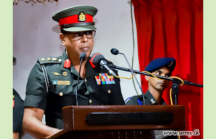 வருகை தந்த தளபதியின் வாகன தொடரணிக்கு இராணுவ மரபுகளுக்கமைய மரியாதை வழங்கப்பட்டதுடன் நிறுவனத்தின் தளபதி மேஜர் ஜெனரல் ஈ.என்.குலசூரிய ஆர்டப்ளியூபீ ஆர்எஸ்பீ பீஎஸ்சீ அவர்களால் வரவேற்கப்பட்டார்.
