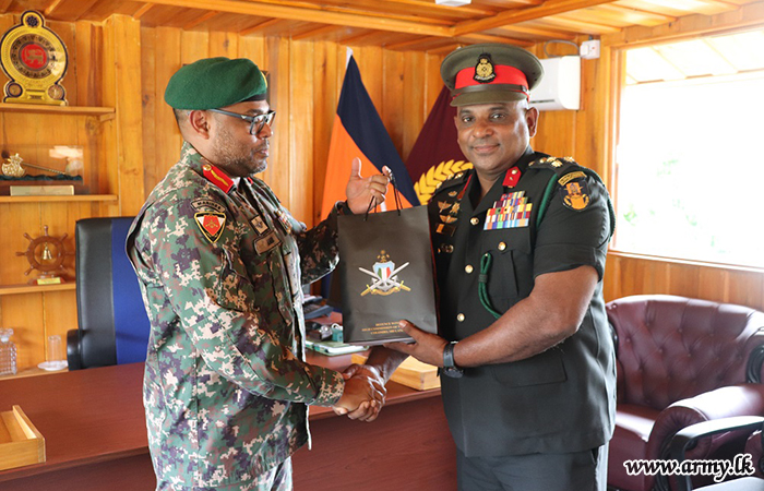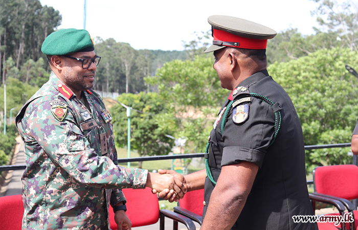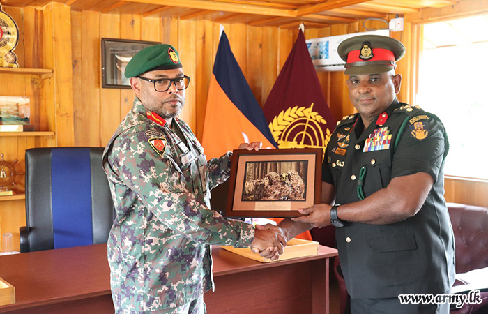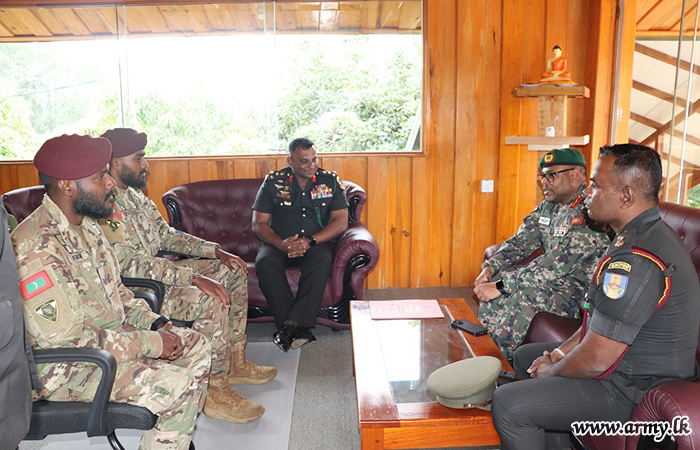 மாலைத்தீவு குடியரசின் பாதுகாப்பு ஆலோசகர் கேணல் ஹசன் அமீர் அவர்கள் 2025 ஜூலை 23 ஆம் திகதி குறிபார்த்து சுடல் மற்றும் ஸ்னைப்பர் பயிற்சி பாடசாலைக்கு விஜயம் மேற்கொண்டு, குறிபார்த்து சுடல் மற்றும் ஸ்னைப்பர் பயிற்சி பாடசாலையில் தற்போது துப்பாக்கி சூட்டு பயிற்சியில் கலந்து கொண்டுள்ள இரண்டு மாலைத்தீவு பாதுகாப்புப் படை வீரர்களான சார்ஜன் ஹுசைன் பஷீன் மற்றும் சார்ஜன் அஷாம் அகமது ஆகியோரின் பயிற்சி முன்னேற்றம் மற்றும் நிர்வாக விடயங்களை ஆய்வு செய்தார்.