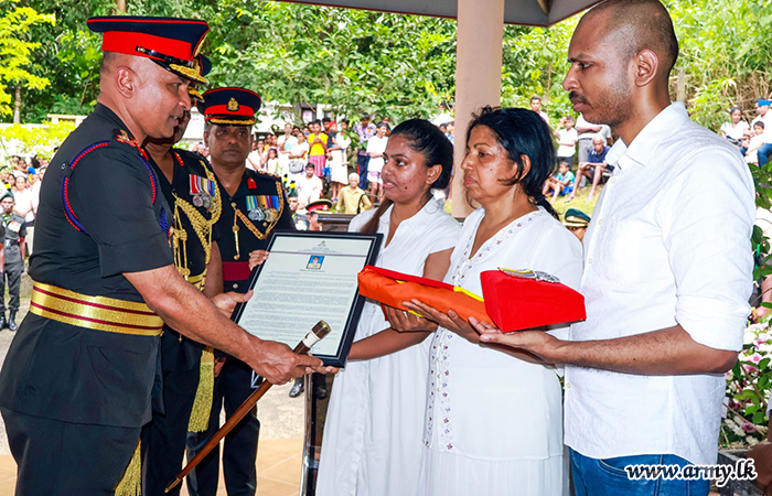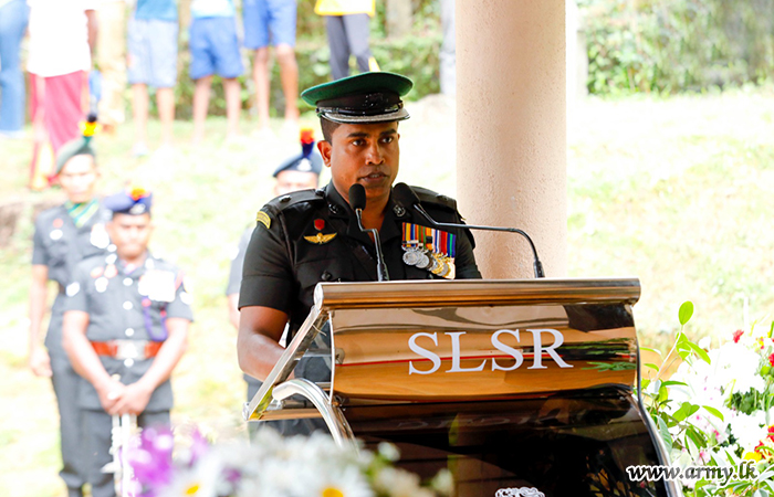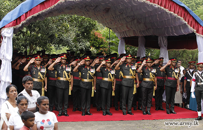 இலங்கை இராணுவ நிறைவேற்று பணிப்பாளர் நாயகம் அவர்களினால் வெளியிடப்பட்ட முறையான விசேட கட்டளை பகுதி I கூடியிருந்தவர்களுக்கு வாசிக்கப்பட்டது. அதனைத் தொடர்ந்து, வீரமரணம் அடைந்த அதிகாரிக்கு வழங்கப்படும் மிக உயர்ந்த இராணுவ மரியாதையான அடையாள துப்பாக்கி மரியாதையை படையினர் செலுத்தினர்.