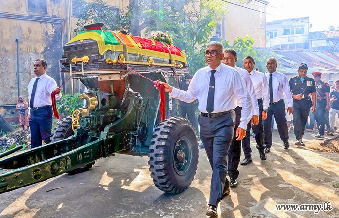 மறைந்த சிரேஷ்ட அதிகாரிக்கு இறுதி மரியாதை செலுத்துவதற்காக இராணுவத் தளபதி லெப்டினன் ஜெனரல் லசந்த ரொட்ரிகோ ஆர்எஸ்பீ சீடிஎப்-என்டியூ பீஎஸ்சீ ஐஜீ, இராணுவ பதவி நிலை பிரதானி மேஜர் ஜெனரல் டிகேஎஸ்கே தொலகே யூஎஸ்பீ என்பீஎஸ் பீஎஸ்சீ, பிரதி இராணுவ பதவி நிலை பிரதானி மேஜர் ஜெனரல் வை.ஏ.பி.எம் யஹாம்பத் ஆர்டப்ளியூபீ ஆர்எஸ்பீ என்டியூ பீஎஸ்சீ, சிரேஷ்ட அதிகாரிகள், அதிகாரிகள் மற்றும் ஓய்வுபெற்ற அதிகாரிகள் உள்ளிட்டோர் கலந்து கொண்டனர்.
