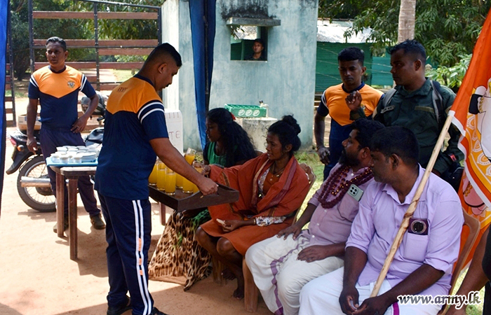 யாழ்.பாதுகாப்புப் படைத் தலைமையக தளபதி மேஜர் ஜெனரல் மேஜர் ஜெனரல் கேடிபீடி சில்வா ஆர்எஸ்பீ என்டியூ பீஎஸ்சீ அவர்களின் வழிகாட்டுதலின் கீழ், பக்தர்களின் பயணத்தை எளிதாக்குவதற்கு படையினர் சிற்றுண்டி மற்றும் தேவையான ஆதரவை வழங்கினர்.