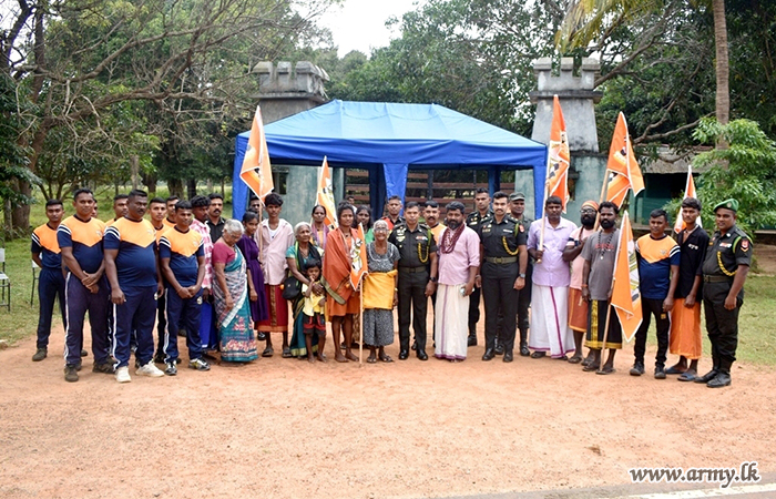 புதுக்குடியிருப்பு, தேவிபுரத்திலிருந்து மன்னாரில் திருக்கேதீஸ்வரம் கோவிலுக்கு சிவலிங்கத்துடனான யாத்திரையின் பக்தர்களுக்கு 11 வது (தொ) கஜபா படையணி படையினர் 2026 பெப்ரவரி 12 அன்று கிளிநொச்சி, அக்கராயனில் உதவி வழங்கினர்.