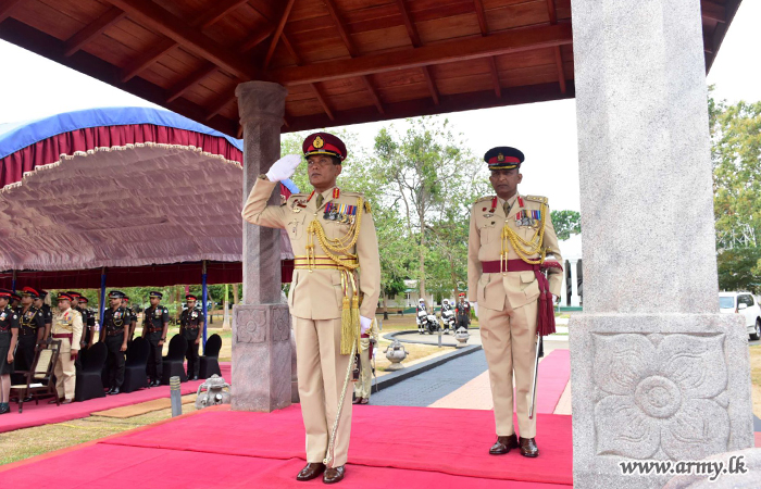 பிரதான நுழைவாயிலில் வழங்கப்பட்ட பாதுகாவலர் அறிக்கையிடல் மரியாதையுடன் அன்றைய நாள் நிகழ்வுகள் ஆரம்பமாகியது. பின்னர் 3 வது கஜபா படையலகினால் அணிவகுப்பு மரியாதை வழங்கப்பட்டது.