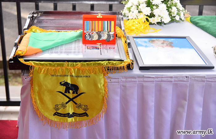 இலங்கை இராணுவ தொண்டர் படையணி தளபதி அவர்களினால் வெளியிடப்பட்ட முறையான விசேட கட்டளை பகுதி I மறைந்த பிரிகேடியரின் சேவையையும் அவரது சேவைக்கான நாட்டின் நன்றியையும் பிரதிபலிக்கும் வகையில் கூடியிருந்தவர்களுக்கு வாசிக்கப்பட்டது. அதைத் தொடர்ந்து, வீரமரணம் அடைந்த அதிகாரிக்கு வழங்கப்படும் மிக உயர்ந்த இராணுவ மரியாதையான அடையாள துப்பாக்கி மரியாதை செலுத்தப்பட்டது.