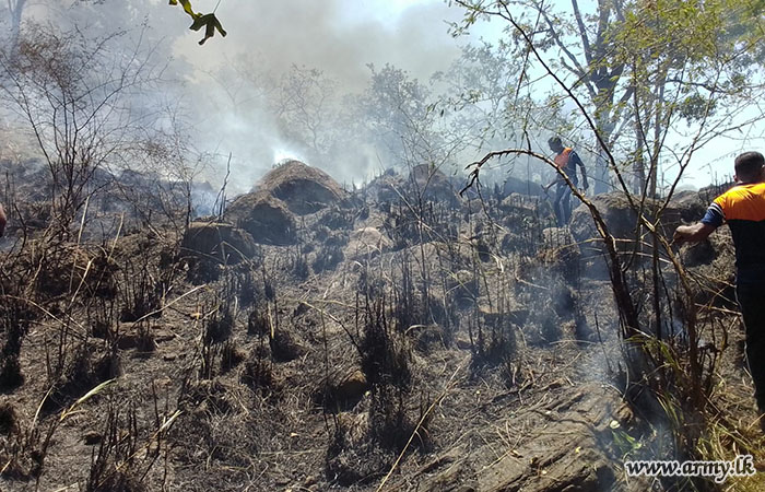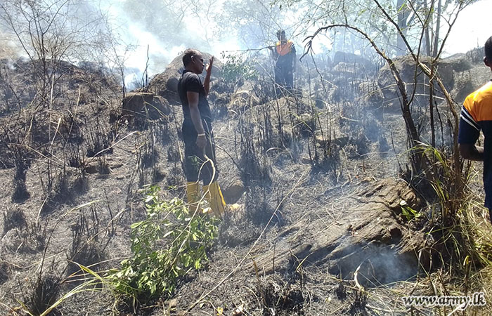 படையினரின் இந்த தீவிர நடவடிக்கையால் வனப்பகுதிகள், விவசாய நிலங்கள் மற்றும் குடியிருப்பு பகுதிகளுக்கு தீ பரவாமல் வெற்றிகரமாகத் தடுக்கப்பட்டது.