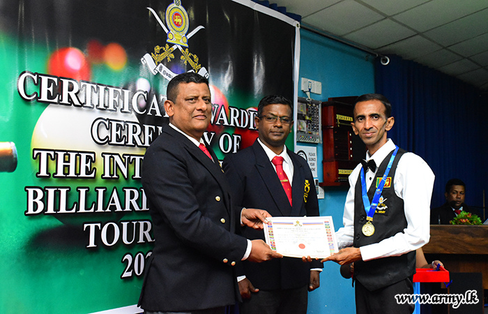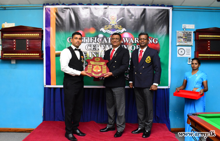 இலங்கை இராணுவ படையணிகளுக்கு இடையிலான பிலியட் மற்றும் ஸ்நூக்கர் 2025 இன் கிண்ணம் மற்றும் சான்றிதழ் வழங்கும் விழா 2025 டிசம்பர் 30 ஆம் திகதி பொறியியல் சேவைகள் படையணி பிலியட் வளாகத்தில் நடைபெற்றது.