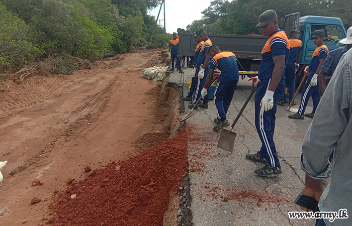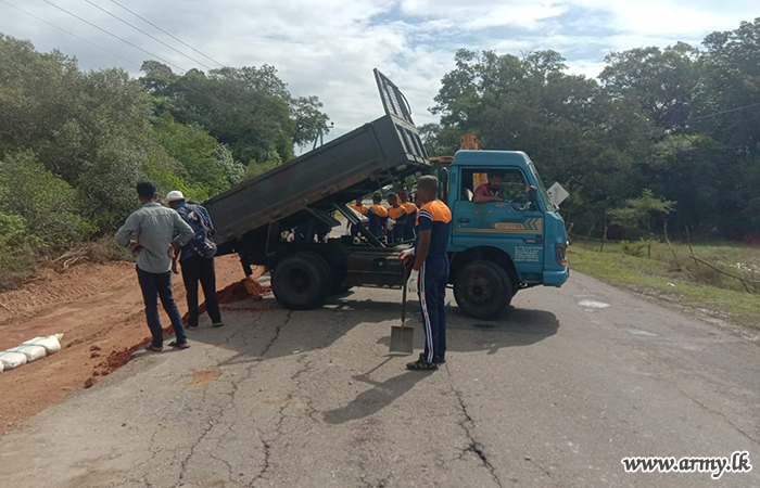 திருகோணமலை முதல் புல்மோட்டை வரையிலான B 424 வீதியின் சேதமடைந்த பகுதியை புனரமைக்க கிழக்கு பாதுகாப்புப் படையினர் உதவி வழங்கினர்.