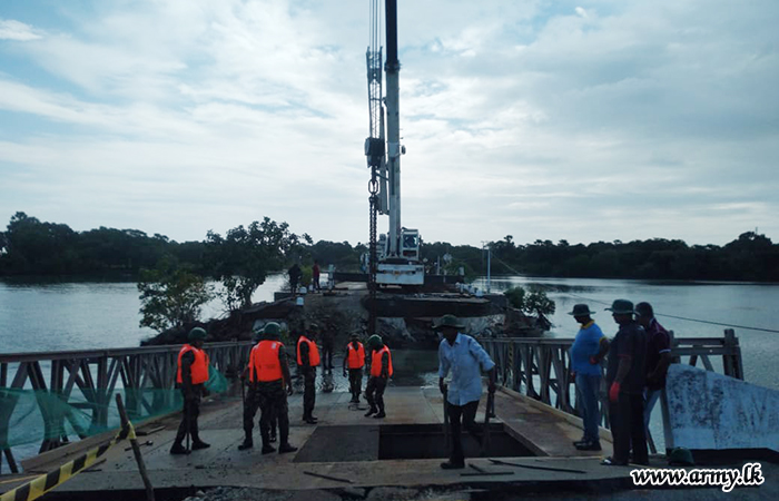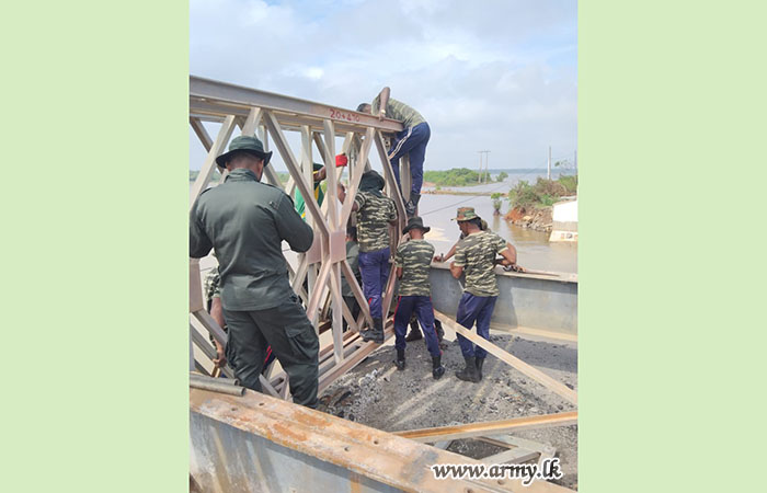 2025 டிசம்பர் 02 முதல் 16 வரை படையினர் தொடர்ச்சியான மற்றும் அர்ப்பணிப்பு முயற்சிகளின் விளைவாக, 50 அடிக்கு முன்னர் இருந்த முதல் சேதமடைந்த பாலம், 2025 டிசம்பர் 16, அன்று 120 அடி நீளமுள்ள பாலமாக வெற்றிகரமாக சீரமைக்கப்பட்டு பொதுமக்களுக்கு மீண்டும் திறக்கப்பட்டது. 59 வது காலாட் படைப்பிரிவின் தளபதி மேஜர் ஜெனரல் எம்டபிள்யூஎஸ். மில்லகல ஆர்டபிள்யூபீ ஆர்எஸ்பீ யூஎஸ்பீ எச்டிஎம்சீ பீஎஸ்சீ, கள பொறியியல் படையணியின் தளபதி பிரிகேடியர் எச்கேபீ. கருணாதிலக ஆர்எஸ்பீ மற்றும் 591 வது காலாட் பிரிகேட் தளபதி கேணல் எம்எஸ்ஐ அலுவிஹாரே ஆர்டபிள்யூபீ ஆர்எஸ்பீ ஆகியோரின் நெருக்கமான மேற்பார்வையுடன் இந்த திட்டம் முன்னெடுக்கப்பட்டது.