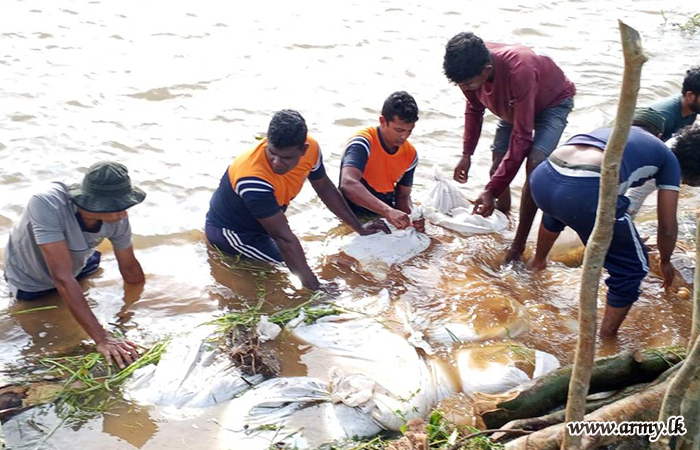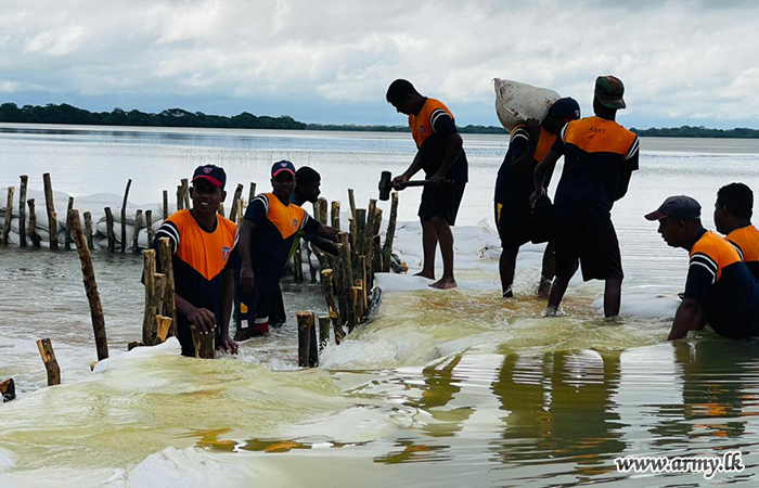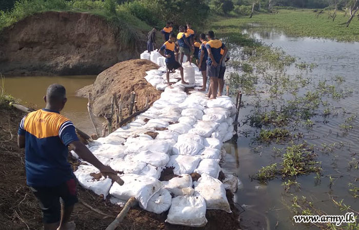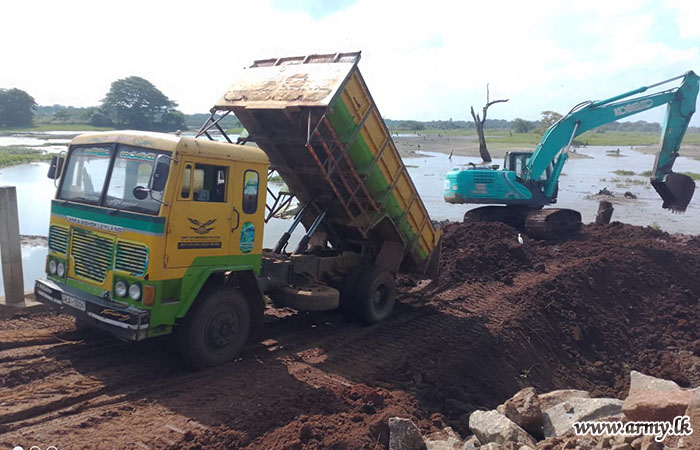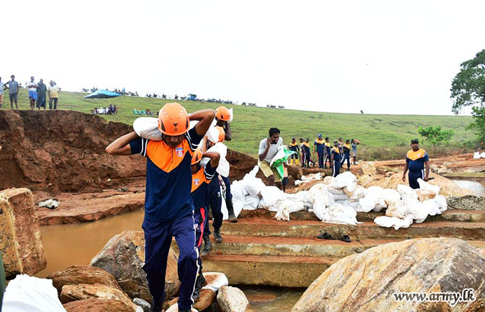 21 வது காலாட் படைப்பிரிவின் 5 வது (தொ) கஜபா படையணியின் படையினர், பொதுமக்களின் உதவியுடன், சீரற்ற வானிலை காரணமாக இடிந்து விழுந்த கெபிதிகொல்லேவ - எல்லேவெவ குளக்கட்டை புனரமைக்கும் பணியில் ஈடுபட்டனர்.
