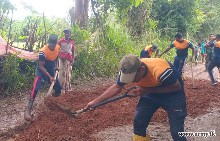 11 வது காலாட் படைப்பிரிவின் 1 வது கெமுனு ஹேவா படையணியின் படையினர் கந்தேஎல பகுதியில் சேதமடைந்த கால்வாய்களை சீர்செய்வதில் நீர்ப்பாசனத் திணைக்களத்திற்கு உதவி வழங்கினர். வெல்கெட்டிய அமுனா கிராமத்தில் உள்ள போதவ அணைக்கட்டைச் சீர்செய்வதில் 2 வது இலங்கை ரைபிள் படையணி படையினர் உதவி வழங்கினர்.