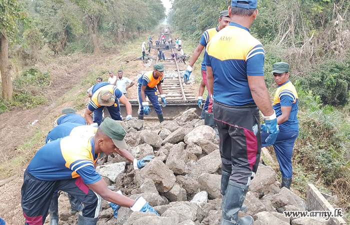 வன்னி பாதுகாப்புப் படையின் கீழ் உள்ள படையினர் பூ ஓயாவில் உடைந்த புகையிர பாதை, மஹாலிந்தவெவ குளக்கட்டு, நீர் பெருக்கெடுத்ததால் சேதமடைந்த புகையிரத பாதைகள், குருவில் பகுதியிலுள்ள யோதவெவ அணைக்கட்டின் சேதமடைந்த பாதை மற்றும் கல்குளம் குளக்கட்டு போன்ற இடங்களில் தேசத்தைக் சீர்செய்யும் நடவடிக்கைகளிலும் புனரமைக்கும் பணிகளையும் மேற்கொண்டனர்.