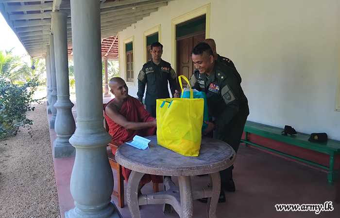 கிழக்கு பாதுகாப்புப் படைத் தலைமையகத்தின், 23 வது காலாட் படைப்பிரிவின் கட்டளையின் கீழ் இயங்கும் 12 வது கெமுனு ஹேவா படையணியின் படையினர், திம்புலாகல பிரதேச செயலகப் பிரிவிற்கு உட்பட்ட சேருவில மற்றும் நாமல்பொகுன கிராம சேவகர் பிரிவுகளில் வசிப்பவர்களுக்கு 200 உலர் உணவுப் பொதிகளை விநியோகித்தனர். அத்துடன், 20 வது கஜபா படையணியின் படையினர் 2025 டிசம்பர் 05 ஆம் திகதி புல்மோட்டை மற்றும் குச்சவெளி பிரதேசங்களில் அமைந்துள்ள எட்டு கோயில்களுக்கு உலர் உணவுப் பொதிகளை விநியோகித்தது.