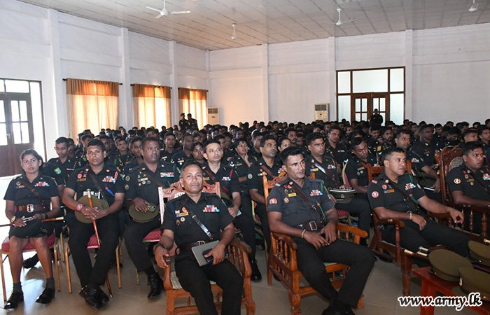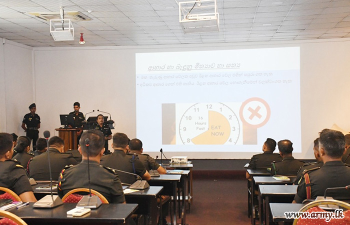 விரிவுரையின் போது, நீண்ட மற்றும் ஆரோக்கியமான வாழ்க்கைக்கான நல்ல பழக்கவழக்கங்கள், மன அழுத்த முகாமைத்துவம், ஊட்டச்சத்து மற்றும் உணவுப் பழக்கவழக்கங்கள் குறித்து கலந்துரையாடப்பட்டது. இந்த அமர்வில் 84 அதிகாரிகள் மற்றும் 254 சிப்பாய்கள் பங்கேற்றனர். அதே நேரத்தில் 197 அதிகாரிகள் மற்றும் 2180 சிப்பாய்கள் 47 இடங்களில் இருந்து ஜூம் மூலம் நிகழ்நிலை முறையில் இந்நிகழ்வில் இணைந்து கொண்டனர்.