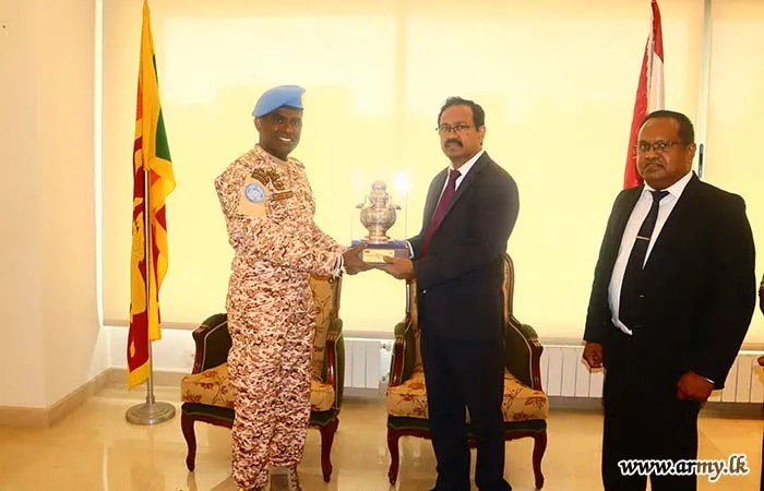 Lieutenant Colonel Y.S.H.N.P Silva USP psc GR, the newly appointed Contingent Commander of the 16th Sri Lanka Force Protection Company in Naqoura, paid a courtesy call on His Excellency Mr. Kapila Jayaweera, Ambassador of Sri Lanka to Lebanon, on 29 August 2025 at the Embassy Office in Beirut.